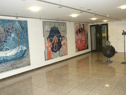 Eines meiner Hauptwerke hängt als Triptychon im ehemaligen Postministerium in Bonn. Das Bild zeigt Arbeiter in den 60er, 70er und 80er Jahren während der Arbeit und das Kreuz der Arbeit beschäftigt sie.